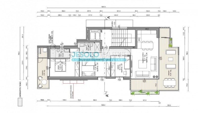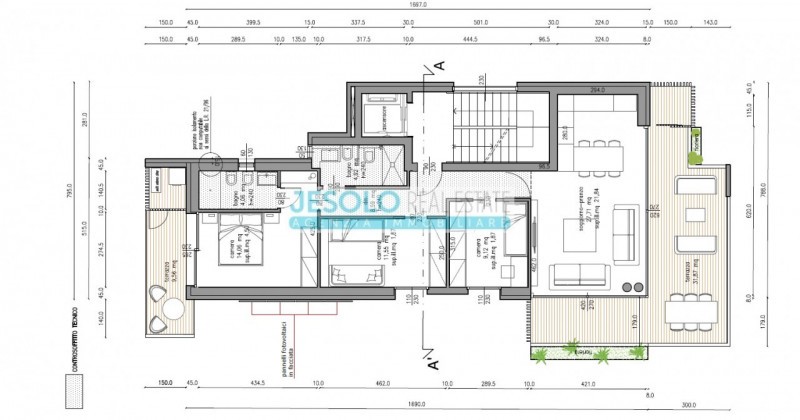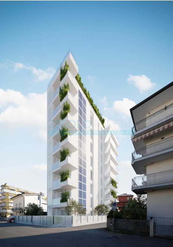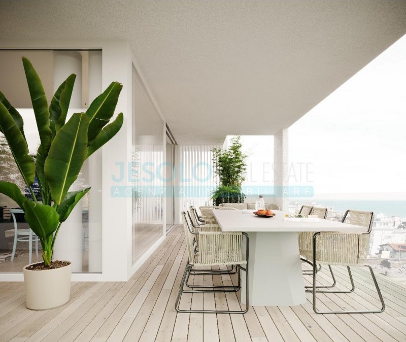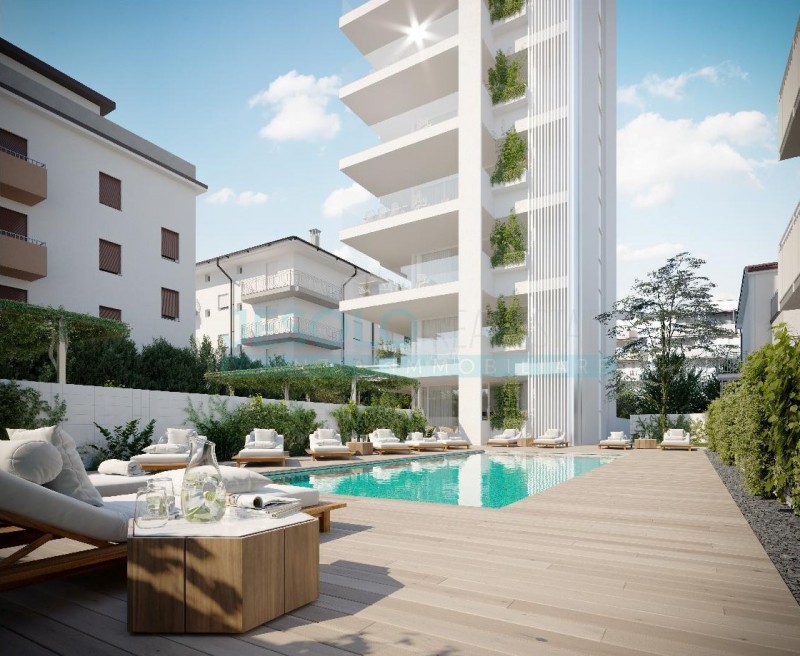 Lägenhet om 86 kvm med havsutsikt med pool och terrass till salu i Jesolo i Veneto, Italien.