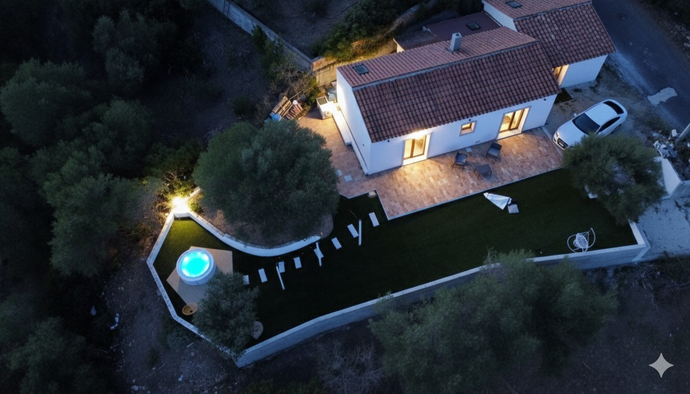 Villan säljs möblerad och har luftkonditionering, balkong, utegrill, kabel tv, Öppen spis, trädgård, uppvärmning, jacuzzi, parkering, pool, bastu, terrass, inredd.