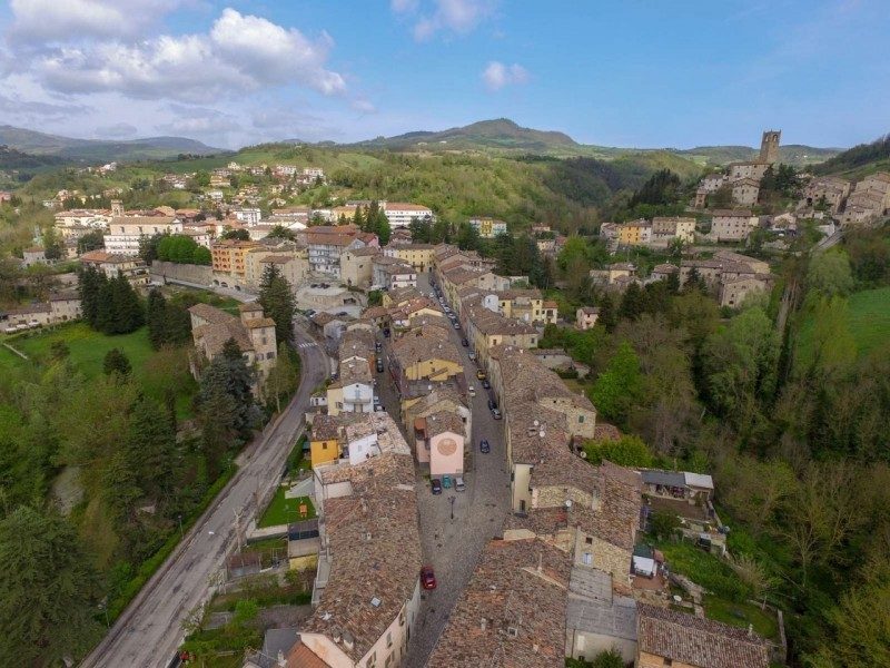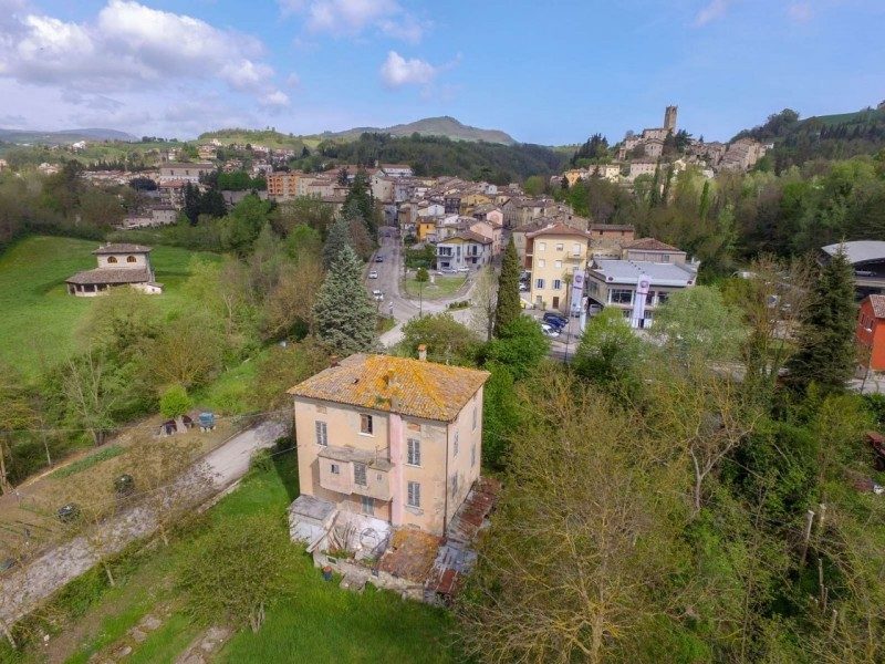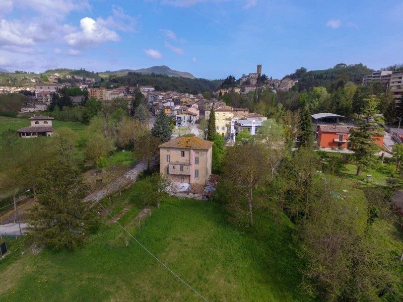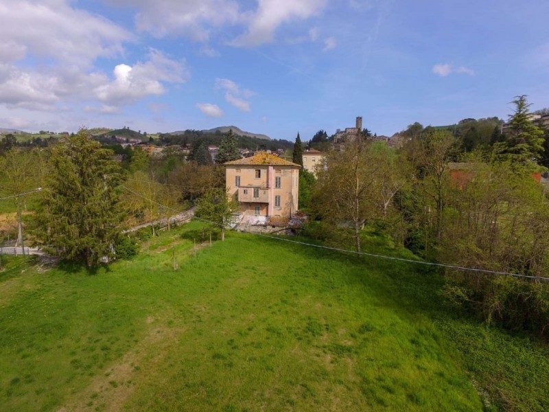 Hus om 450 kvm nära skidbackarna med trädgård till salu i Macerata Feltria i Le Marche, Italien.