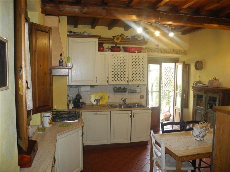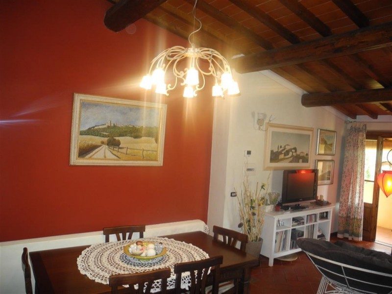 Hus om 110 kvm med trädgård och terrass till salu i Terranuova Bracciolini i Toscana, Italien.