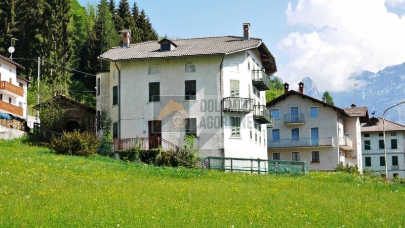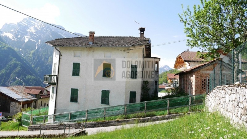 Hus om 400 kvm nära skidbackarna med trädgård och terrass till salu i Rivamonte Agordino i Veneto, Italien.