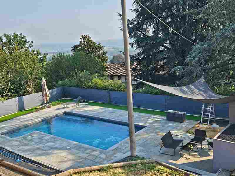 Villa om 160 kvm med pool och trädgård till salu i Asti i Piemonte, Italien.